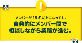 そんな会社がたった1年で劇的に変化したのです。従来のままなら、仮に人を増やしたとしても、バラバラになって、空中分解していてもおかしくありませんでした。ところが実際は、大きなトラブルが発生するどころか、仲良く協力して自発的に学び合い、目標に向かってメンバーが自分たちで仕事を動かす組織にまでなりました。
